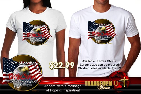 This unique tee shirt expresses how we feel about our great nation and all who dwell within it. Let's spread the word!